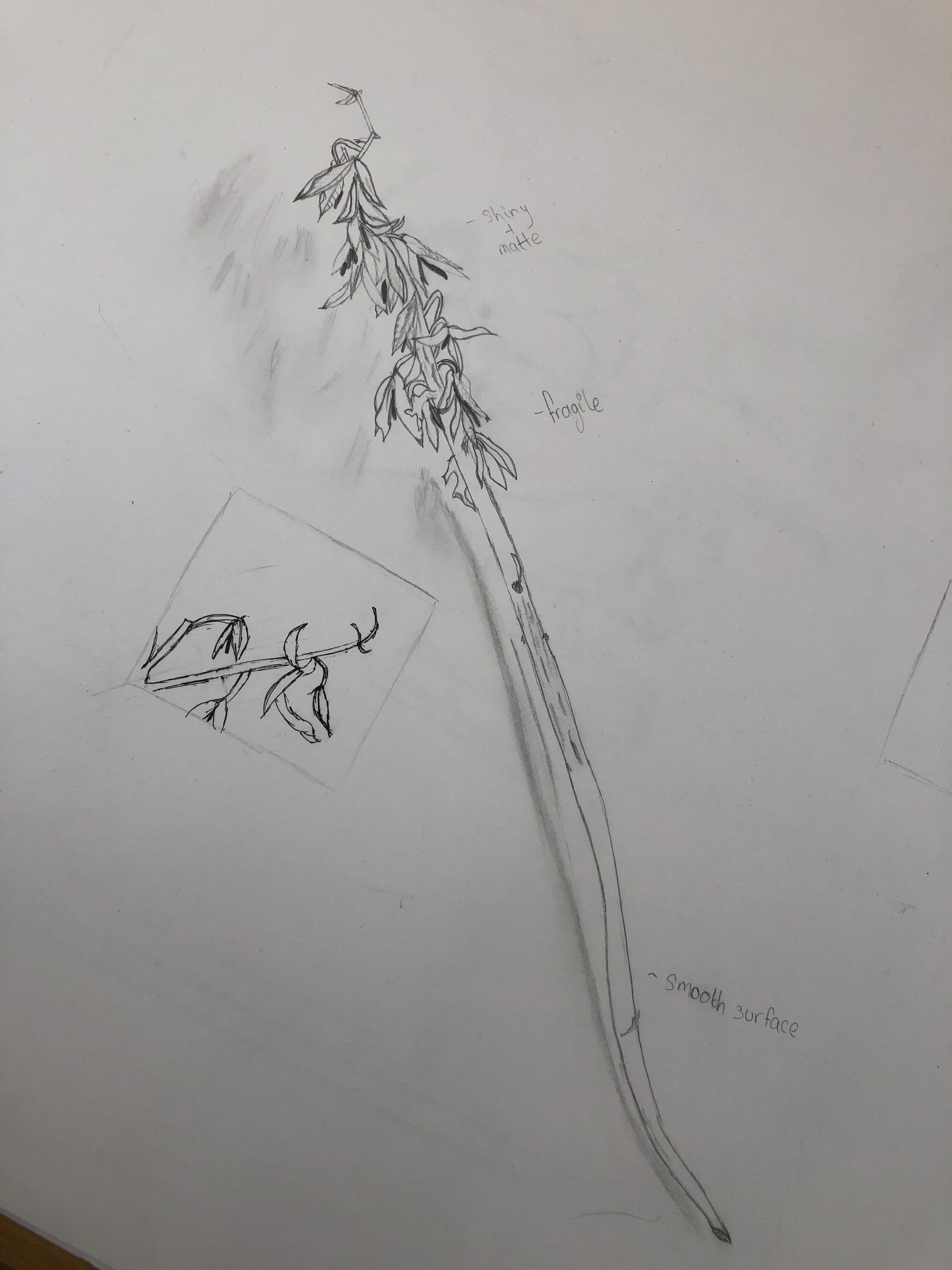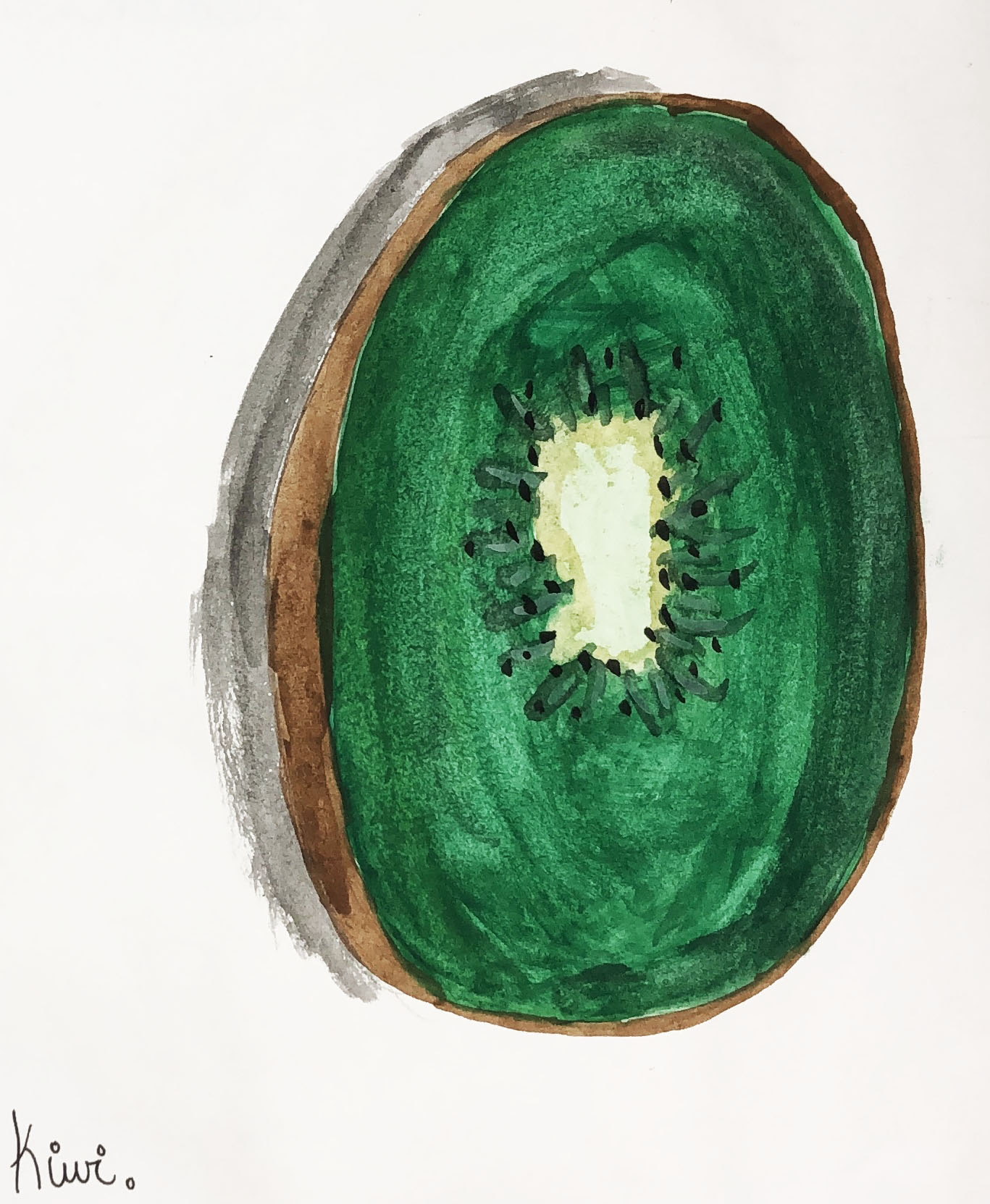 These are still life studies of a kiwi and a cactus. I used water colour and an ink pen to create these. I used watercolours because I knew it would give me the right texture.