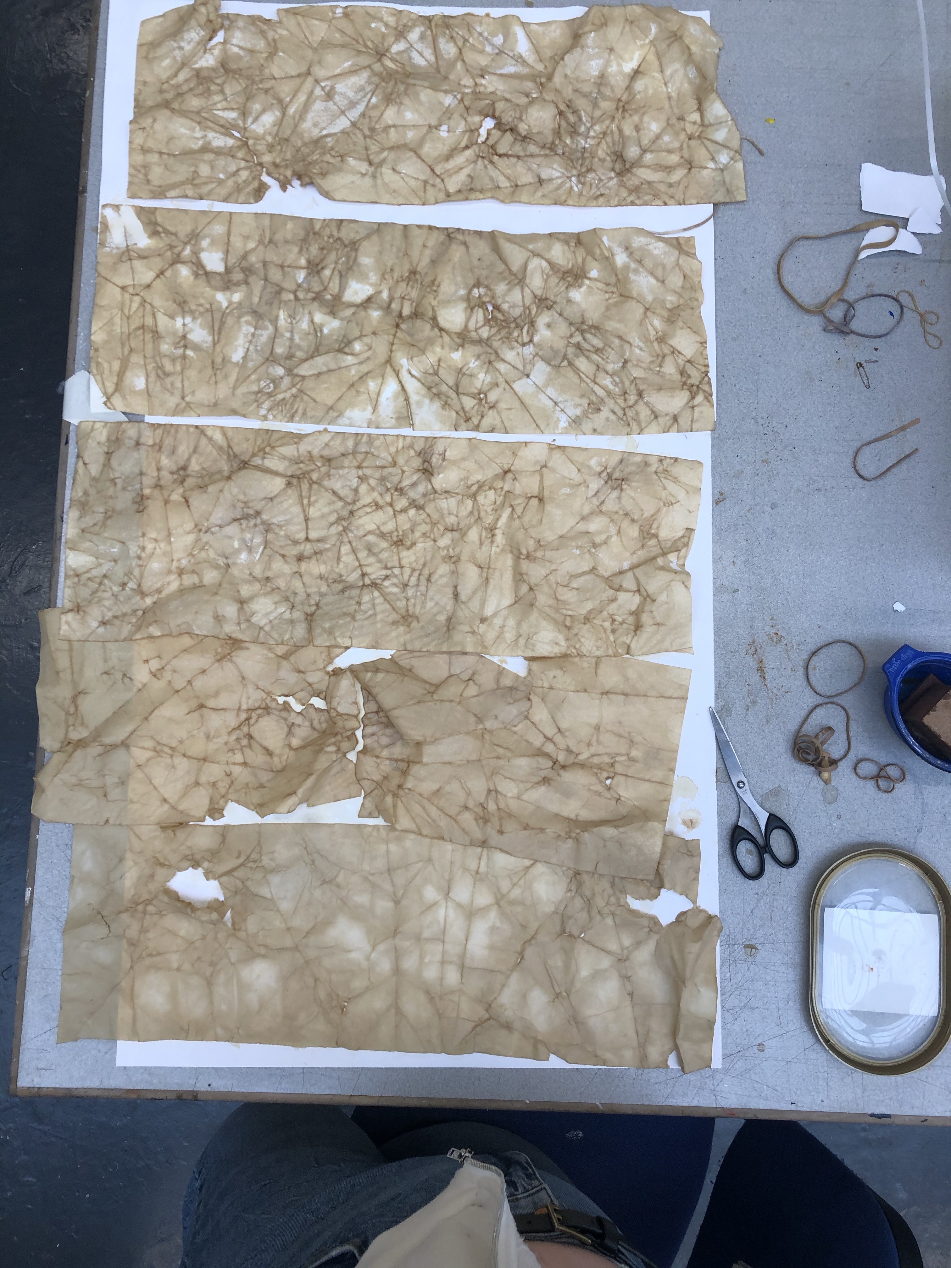 This week was my final week of experimenting. I spent my week dyeing different types of paper with coffee. The first type of paper was thick cartridge paper. The second type was 80 gsm drawing paper. I then also dyed a small piece of printing paper. They all had different out comes however I’m hoping to use the 80 gsm drawing paper as it’s in a roll and I need to create a rather long Japanese scroll.