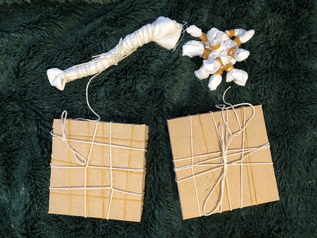 The firs type of Japanese scroll that I am creating is a modern version which is hung vertical on a string. I have decided to do shibori for these scrolls. I have chosen to do this as Shibori is a Japanese tie dye and I found it so intriguing when I was experimenting with it.