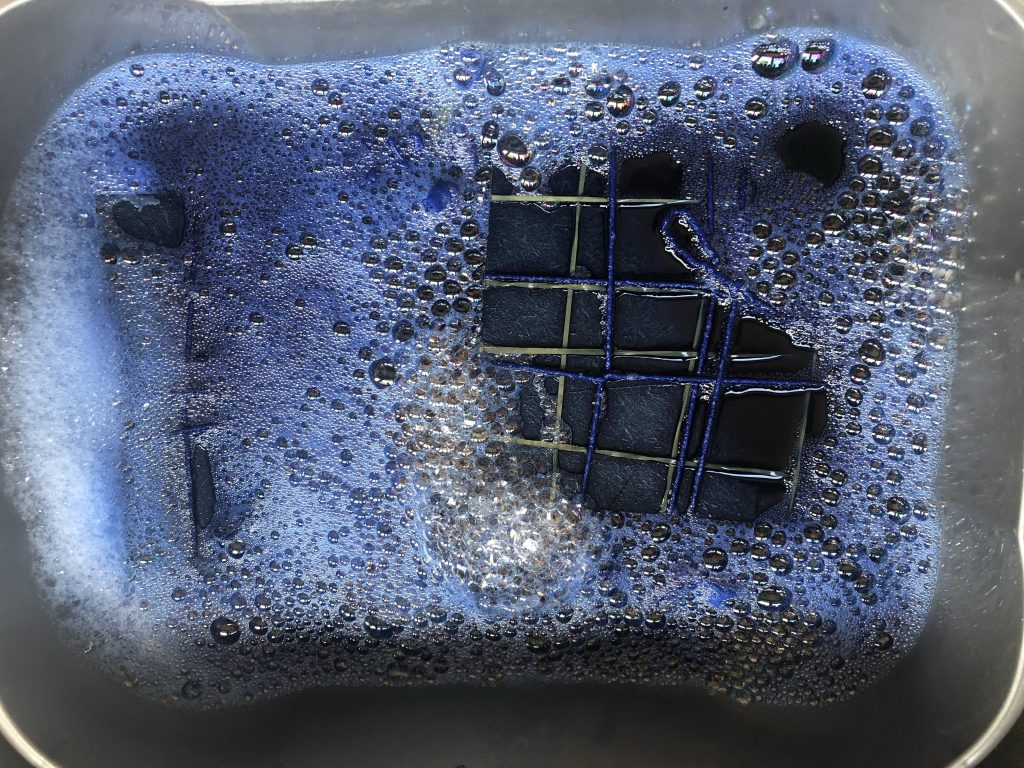 ( The picture doe not show the true colour of the dyed fabric) These are the final results. I have decided to use the first second and third piece as part of my FMP. The reason for this being is I prefer the outcome for these but also I feel as though they fit better together. The whole reason I created 5 different ones in the first place was to make sure I was going to have three that I was completely happy with placing in my FMP.