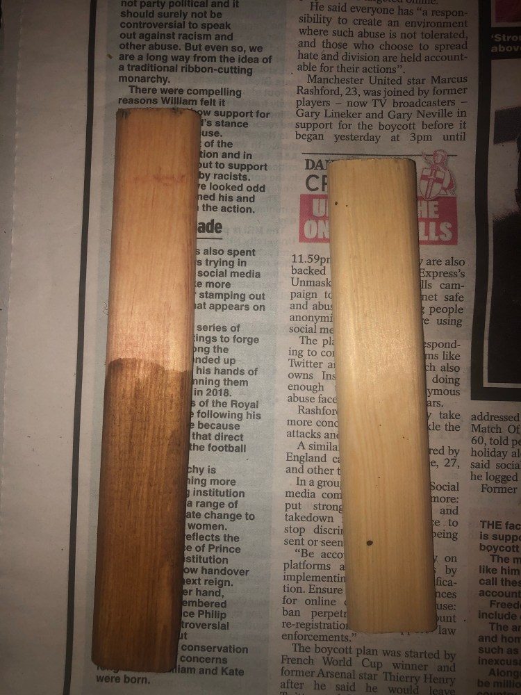 These are a before and after of the wood pieces which have been painted with watered down acrylic and then varnished with some clear wax to give it a shine.